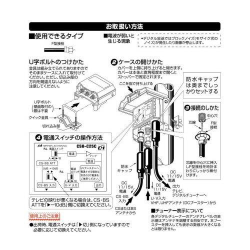 Csb-c25c-sp uv混合パスタイプ 外側は樹脂ケースで防滴構造内部は板 金ケースで電波の漏洩飛込み防止に対 応したシールド構造です チューナーなどからの供給電源で動作し ます スカパープレミアムサービス受信にも 対応しています.